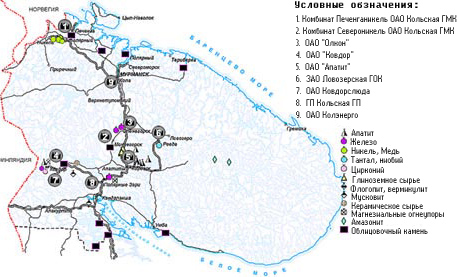 Разведка и освоение недр Кольского полуострова привели к созданию мощного горнопромышленного комплекса, в состав которого входят предприятия горно-химической промышленности, цветной и черной металлургии, промышленности строительных материалов, специализирующиеся на добыче и первичной переработке сырья до полуфабрикатов (минеральных концентратов).