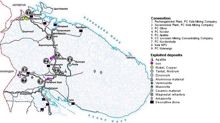 » Scheme of placement of the main industrial enterprises and exploited deposits