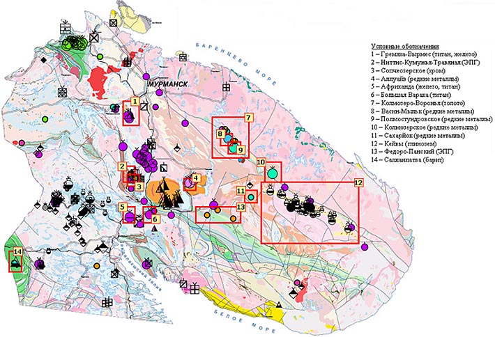 СХЕМА РАСПОЛОЖЕНИЯ ПЕРСПЕКТИВНЫХ МЕСТОРОЖДЕНИЙ И РУДОПРОЯВЛЕНИЙ