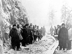 Сооружение дороги началось в июне 1915 г. В нем участвовало до 10 тысяч строителей. В землянках и бараках отсутствовали элементарные бытовые удобства. Не хватало продовольствия и теплой одежды. Железная дорога строилась без соблюдения технических норм.