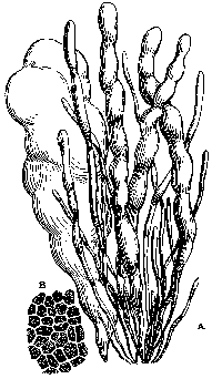 Внешний вид растений (А) и клетки с поверхности (Б) E. alnariana Bliding. Указывается только для Белого моря.