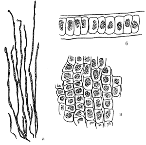 Внешний вид растений (А); вид клеток на срезе и с поверхности слоевища E. intestinalis (Linnaeus) Link. На литорали, на камнях или в ваннах, в условиях нормальной или пониженной солености, в местах, загрязненных органикой.
