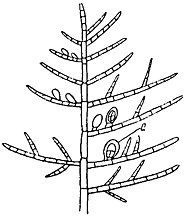 Род Antithamnion Слоевище в виде небольших кустиков, до 6 см высоты, состоит из моносифонных клеточных нитей. На длинных веточках обильно развиваются супротивно или односторонне короткие веточки. Тетраспорангии развиваются на внутренней стороне коротких веточек, сперматангии в виде пучков бесцветных разветвленных нитей, цистокарп окружен несколькими короткими веточками, расположен на поверхности слоевища. Antithamnion boreale (Gobi) Kjellman = Scagelia pylaisei (Montagu) Winne. В сублиторали, в поясе ламинарий.