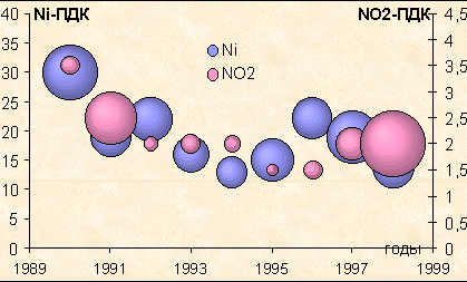 3.По сравнению с прошлым годом концентрация никеля снизилась с 9 до 7 ПДК, а остальных ингредиентов - не изменилась.