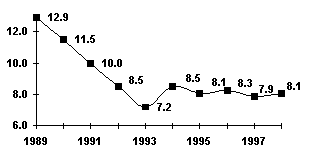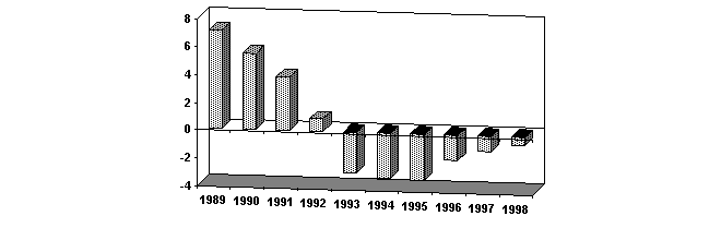 | Показатель | 1989 | 1990 | 1991 | 1992 | 1993 | 1994 | 1995 | 1996 | 1997 | 1998 |