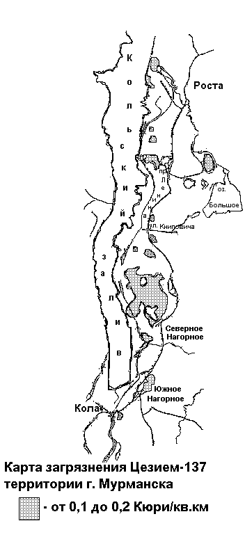 По данным радиологической лаборатории Государственного центра Госсанэпиднадзора Мурманской области и лаборатории окружающей среды ремонтно-технологического предприятия “Атомфлот” в наблюдаемой зоне этого предприятия (поселок Роста) содержание искусственных радиоактивных веществ (цезия-137, стронция-90) в почве, растительности, снеге, атмосферных осадках не превышает фоновых величин.
