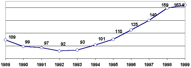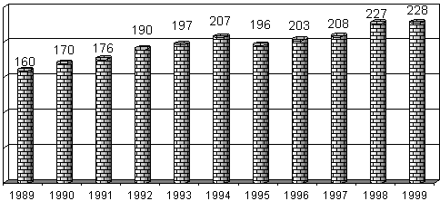 Уровень заболеваемости детей значительно превышает среднероссийские показатели. Как общая, так и первичная заболеваемость детей в 1998г. в Мурманской области выше среднероссийских показателей на 35 - 36 %.