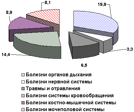 Структура общей заболеваемости взрослого населения Мурманской области в 1999г., %