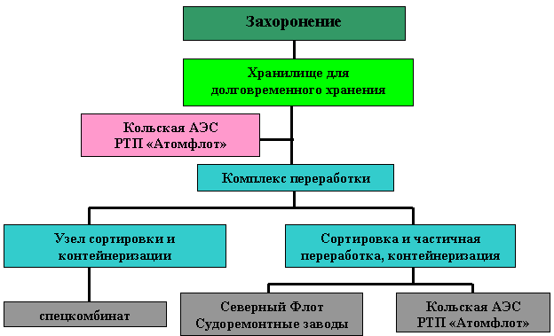 - Создание трех централизованных пунктов по глубокой переработке основного объема РАО, образующихся в Северном регионе: